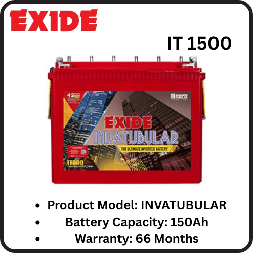 Exide IT 500 tubular inverter battery for reliable home power backup. Compact design, low maintenance, and stable performance—ideal for lights, fans, and essential appliances.
