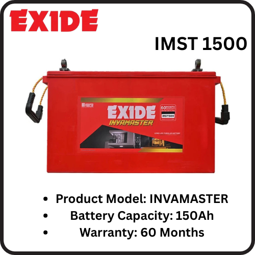 Exide IMST 1500 short tubular inverter battery with 150Ah capacity, fast charging, low maintenance, and reliable performance—ideal for home and office power backup.