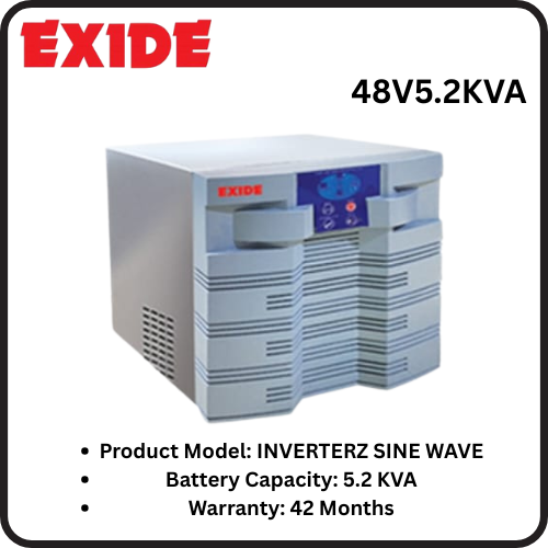 The Exide 48 V 5.2 kVA Inverter is ideal for users who need robust, efficient, and uninterrupted power backup — from homes with multiple appliances to offices and light industries with critical loads.